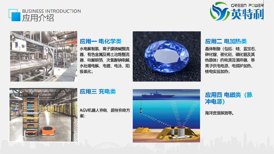 (1)电化学类水电解制氢整流器、离子膜烧碱整流器、有色金属及稀土冶炼整流器、电解铜箔、次氯酸钠电解、水处理电解、电镀、电泳、阳极氧化;